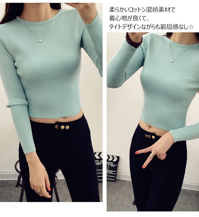| 商品名 | ニットセーター ニットトップス ショート丈ニット インナーニット レディース 長袖 2017秋冬新作 セクシー リブ編み 無地 2017秋冬新作 |