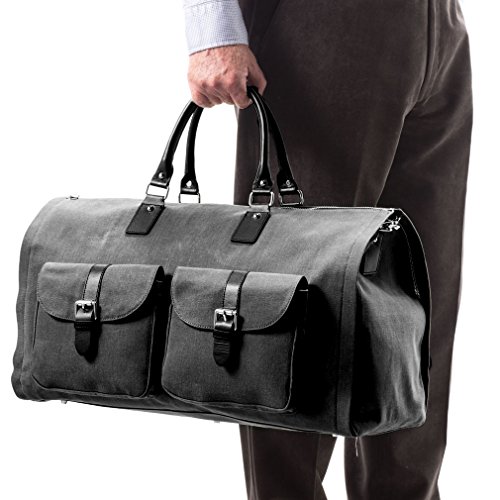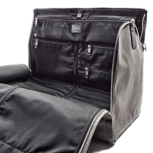 -. Brand : HOOK & ALBERT -. Department : unisex-adult -. Feature : 22 x 13 x 10 Inches / Meets domestic & international carry-on requirement. / Back external zip pocket fits most tablets and e-readers. / 4 internal pockets for ties and other accessories. Additional internal side pockets for shoes. / Snap tab to secure garment hanger. The garment section can accomodate 2-3 small wire hangers or 1 medium/large coat hanger. -. ProductGroup : Apparel -. ProductTypeName : LAGE -. Title : Hook and Albert Men's Canvas and Leather Garment Weekender Bag