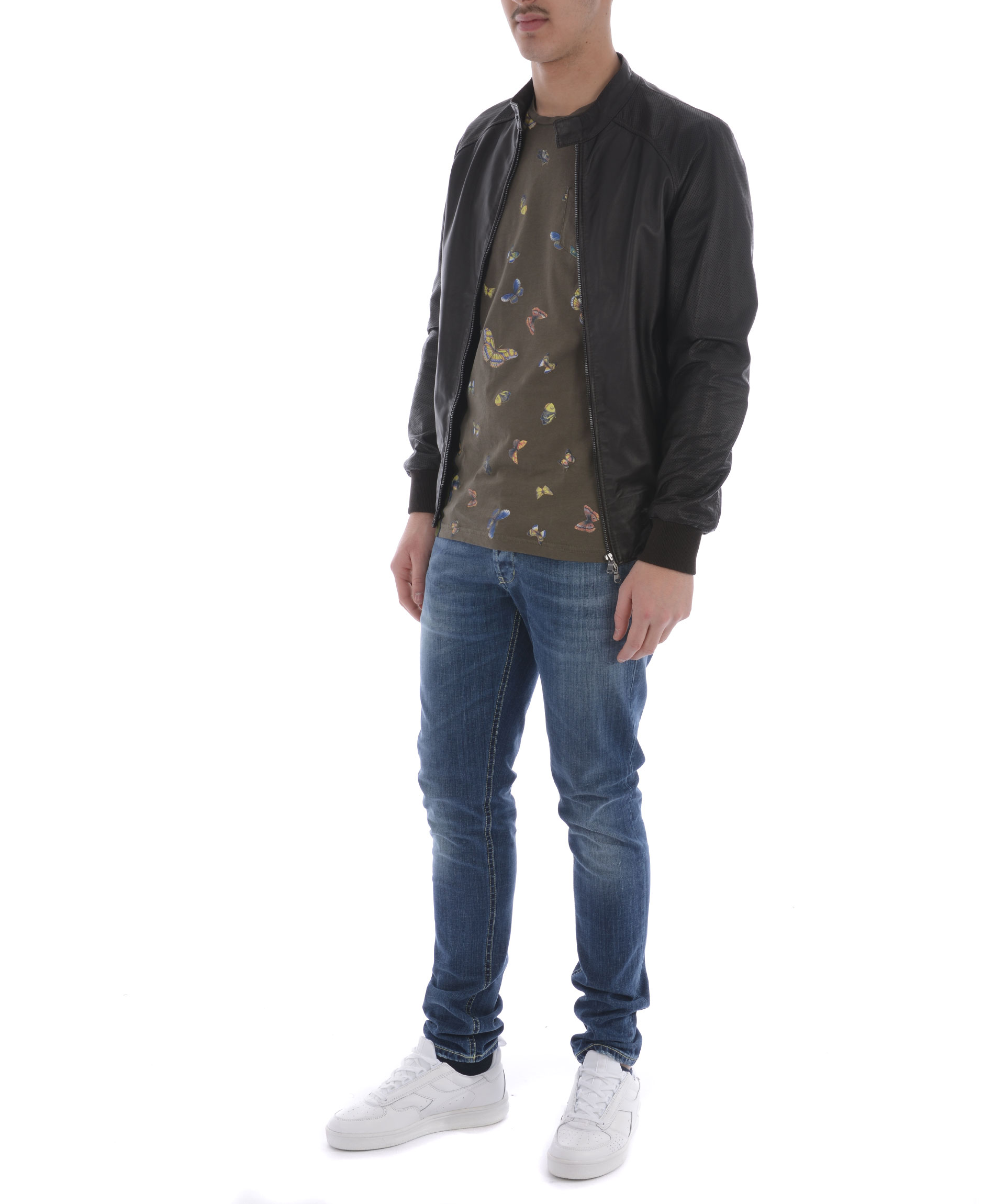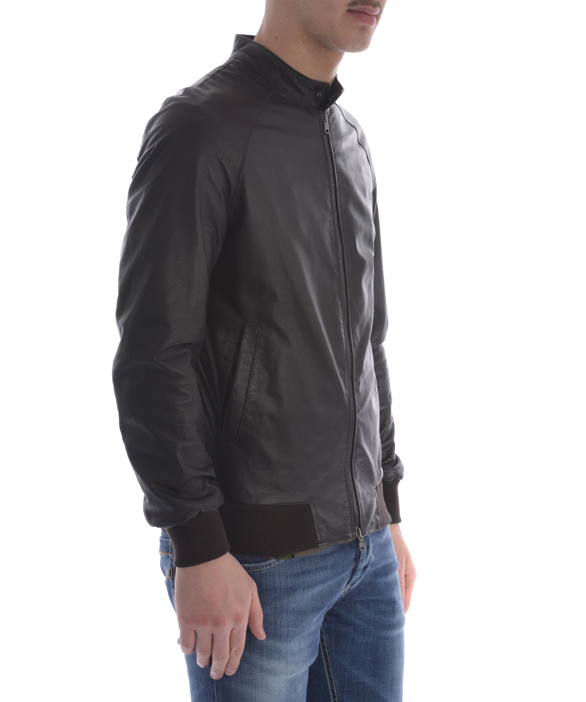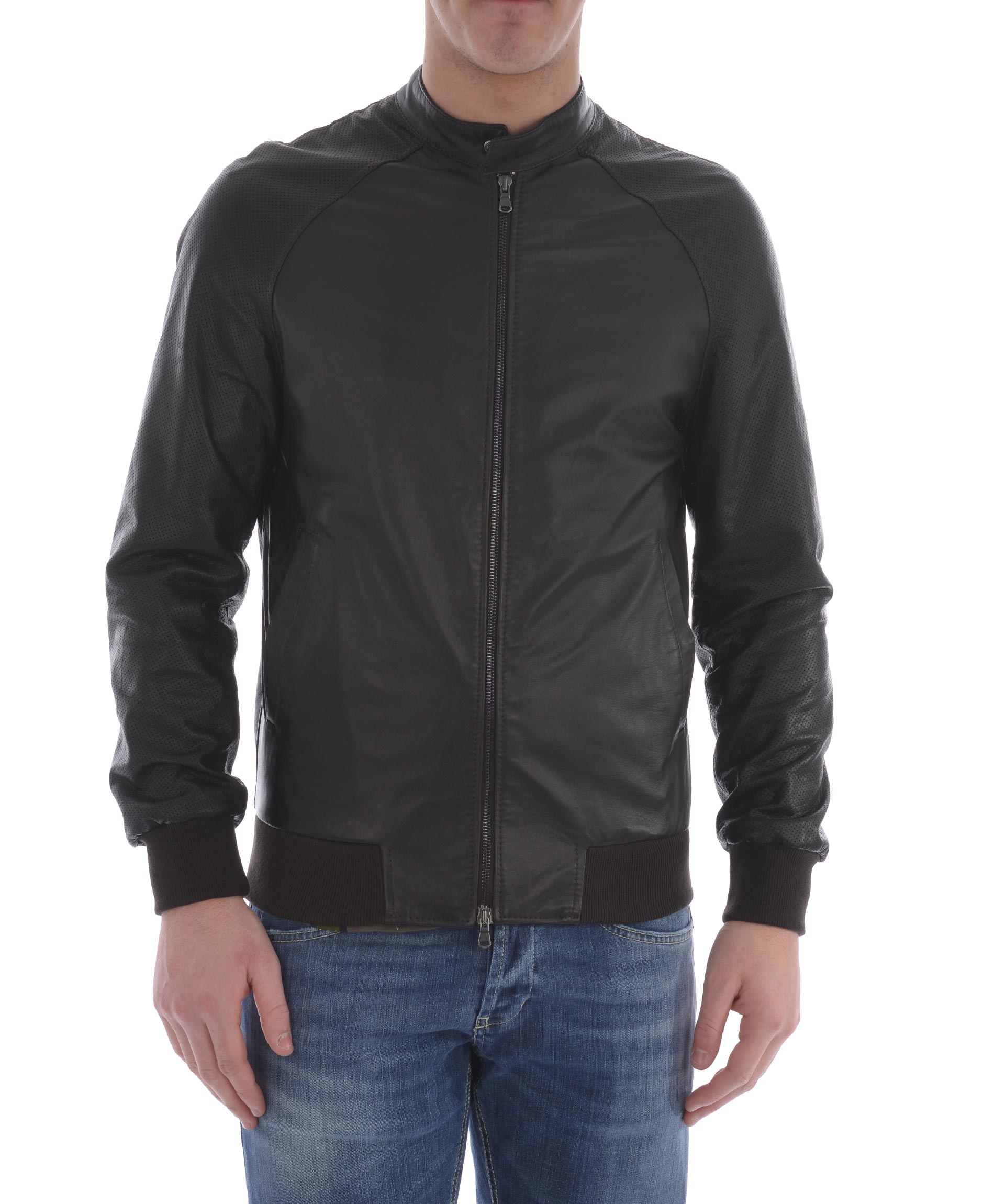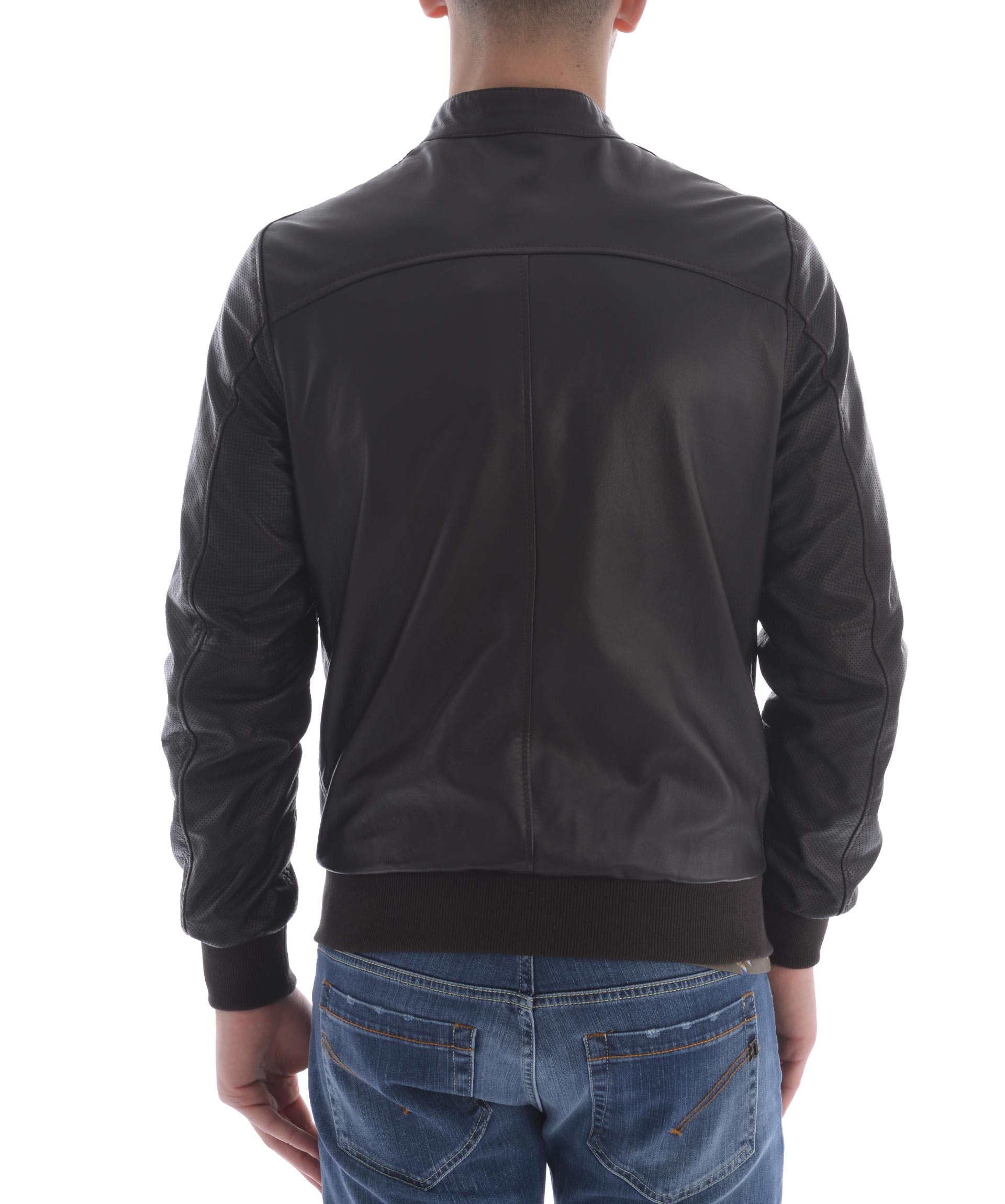 Perforated Sleeve Jacket from Daniele Alessandrini: Dark Brown Perforated Sleeve Jacket with piping neck with press stud, long sleeves, front zipped closure, ribbed cuffs and straight hem.