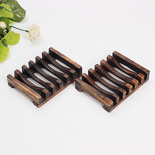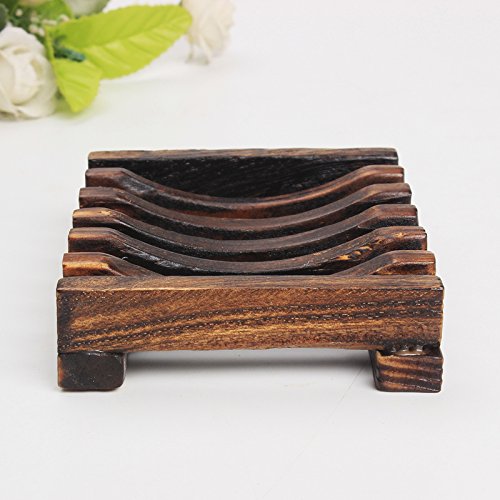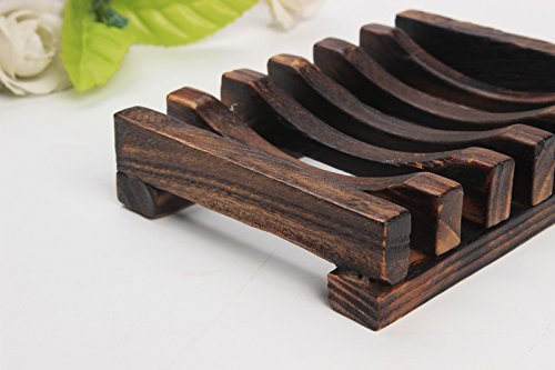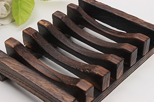 FuXing Soap Dish Case, Wooden Soap Saver Holder, Bathroom Wood Shower Antiqued Dark Brown Case Natural Country Style