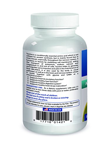Best Naturals Taurine 1000 mg 250 Tablets - Supports Eye Health, Healthy Cellular Activity & Cardiovascular Health