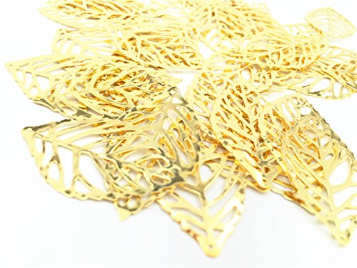 YYaaloa 50pcs 20x35mm Leaf Charms Pendant for Crafting Jewelry Making Accessory (50pcs Gold)