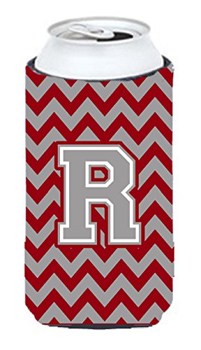 Letter R Chevron Crimson and Grey Tall Boy Beverage Insulator Hugger CJ1043-RTBC