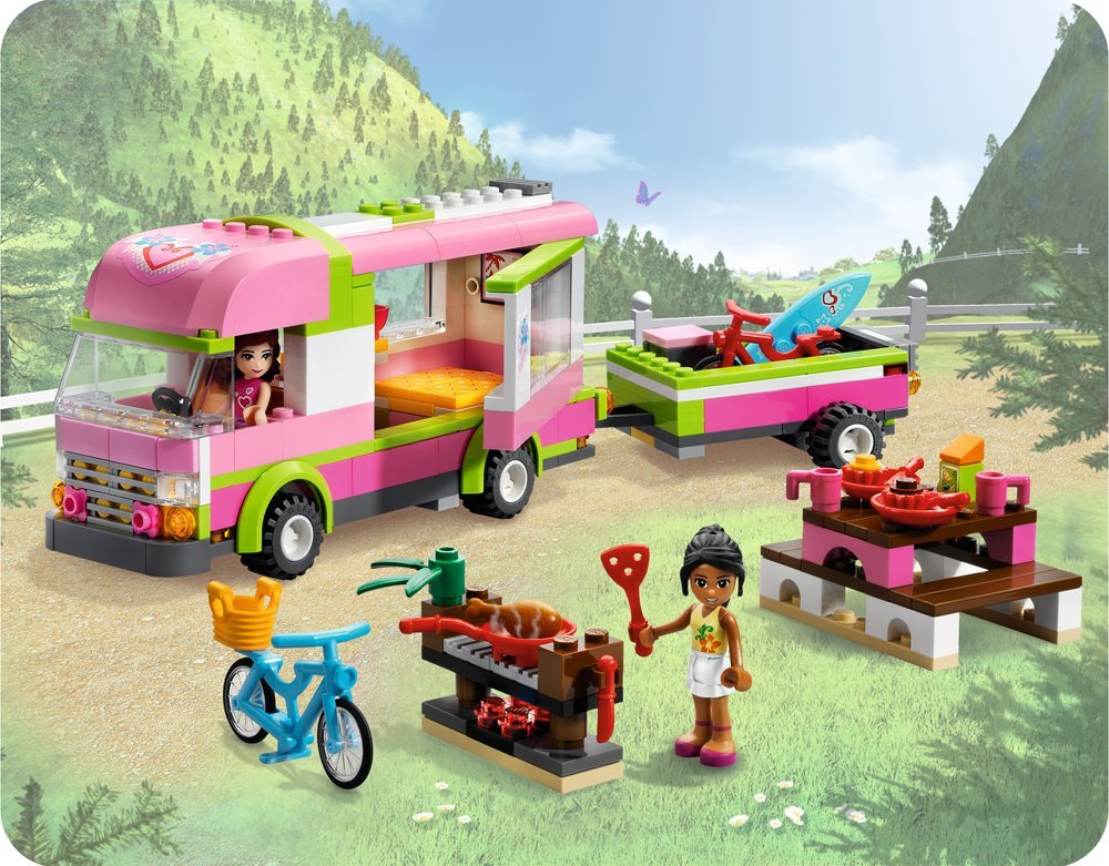 Let's enjoy biking, hiking and surfing under the sun if you have a camping car in the mountains, in the forests, in the ocean, etc. If you open the roof and the door of the camper, inside is spacious! With Olivia and Nicole's minifig.