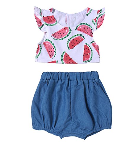 -. Title : Newborn Baby Girls Watermelon P.R.Inted T shirt Top Denim Short Pants Outfit Kids Clothes