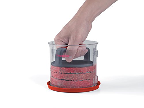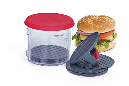 11 piece patty caddy set includes: storage lid, comfort grip press plate, 8 dividers and a container