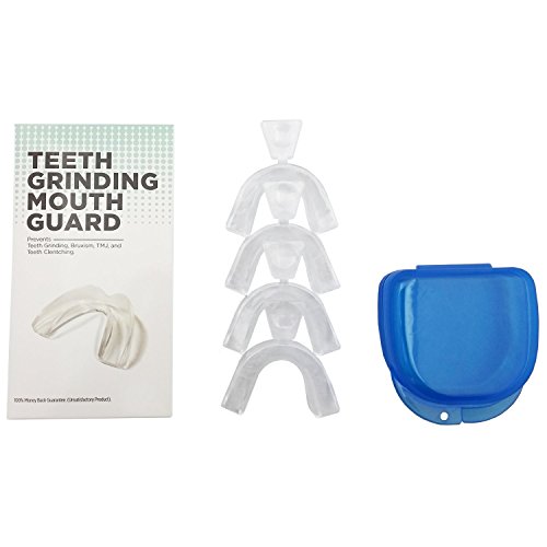 -. Feature : HIGHLY RECOMMENDED mouth guard for grinding teeth by Dentists Worldwide during sleep, to PROTECT YOUR TEETH during sports, to HELP with mouth guard BRUXISM, and as an added bonus works perfectly as a TEETH WHITENING TRAY! / COMFORT - The UNIQUE DESIGN of our Teeth Grinding Mouth Guards Make Them EASILY TRIMMED to Fit Most Mouth Sizes and Shapes, Tooth Configurations and more, allowing for MAXIMUM COMFORT and JAW RELAXATION. / MOLDABLE FIT - Simply Heat them up in Hot Water and Press into Your Mouth Firmly to Create a CUSTOM FIT for Your Teeth and Mouth to REDUCE PAIN and DISCOMFORT caused by cheaper non-custom mouth guards. / RELIABLE and DURABLE - Using THICKER Mouth Guard Designs, we have Created a Mouth Guard that LASTS LONGER than Other Brands. PREVENT your Teeth Grinding, Bruxism, TMJ, and Teeth Clenching for longer than before. / 100% MONEY BACK GUARANTEE. (Unsatisfactory Product.)