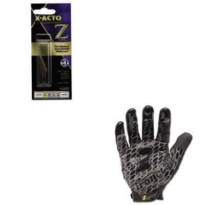 Studio : X-acto Publisher : X-acto Binding : Office Product Product Description lt;stronggt;EPIXZ211lt;/stronggt;lt;BR/gt;X-acto Z Series 11 Replacement Bladeslt;BR/gt;For delicate, precision cutting, trimming and stripping. Easily cuts paper, plastic, balsa, thin metal, cloth, film and acetate. Use with type A handle. Blade Type: Replaceable Materials: Stainless Steel.lt;BR/gt;lt;BR/gt;lt;stronggt;IRNBHG04Llt;/stronggt;lt;BR/gt;X-acto Z Series 11 Replacement Bladeslt;BR/gt;There's more to these gloves than just providing a steady grip while toting packages. They are also good for handling glass, metals and ceramics and for working with power tools. Breathable spandex allows for lasting comfort. With patented silicone-fused palm for super-tacky grip. Airprene knuckle impact protection. Style: Package-Handling Wrist Style: Hook and Loop Closure Materials: Silicone. 0