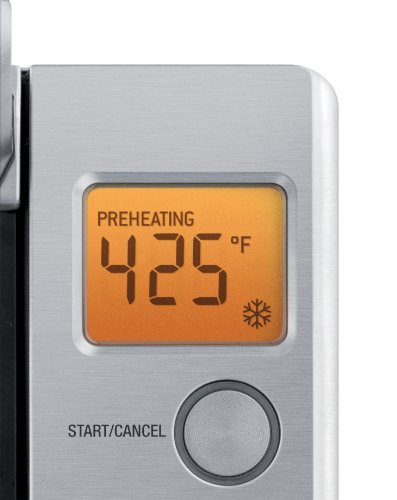 -. Feature : 1800-watt 3/5-cubic-foot 4-slice oven with 8 preset functions and Element IQ technology / Backlit LCD screen; time/temp control dial; defrost button; temperature-conversion button / Tempered-glass door; 3 rack positions; removable crumb tray for quick cleanup / Includes 10-by-10-inch enamel baking pan and 10-by-10-inch enamel broil rack / Measures 16-1/2 by 14-1/4 by 10 inches; 1-year limited warranty