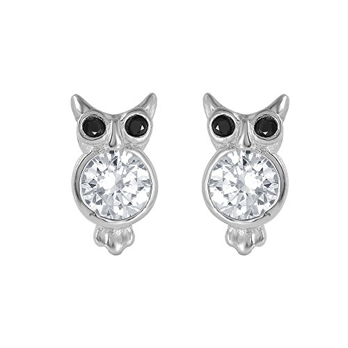 -. Title : Sterling Silver Cz Owl Post Earrings With Black Cz Eye Accents