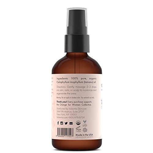 - Nourish Your Skin With the Highest Quality Available. Valentia Tamanu Oil is USDA Certified Organic, 100% pure, natural, synthetic-free, unrefined, virgin, and never tested on animals. It’s extracted from organic Calophyllum inophyllum kernels, cold-pressed in small batches, then bottled with love in dark amber glass to protect its therapeutic properties so you can indulge your skin each day without compromise.
