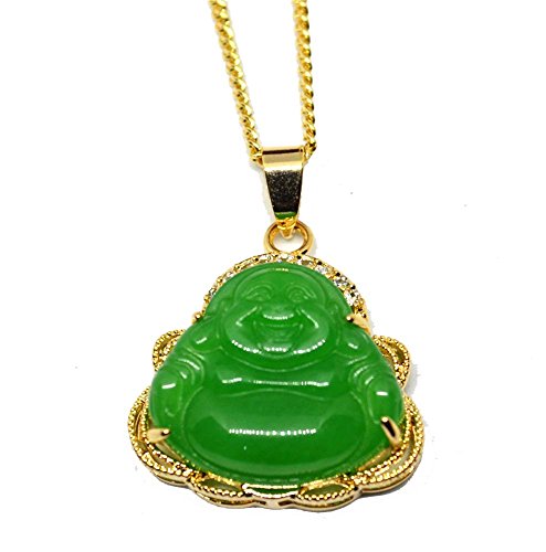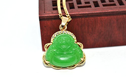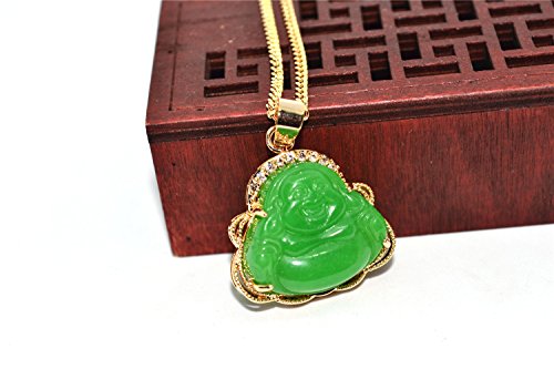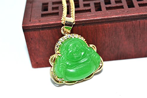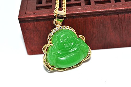 -. Title : 14K GOLD FINISH ICED OUT Green JADE BUDDHA PENDANT Chain Necklace