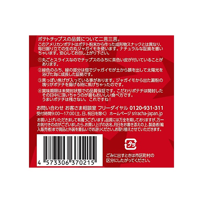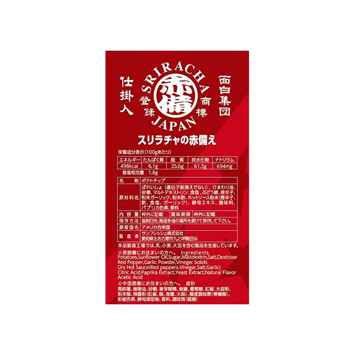 원본상품명: サンフレッシュ スリラチャの赤備えポテトチップス 100g×12袋