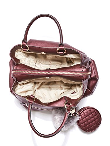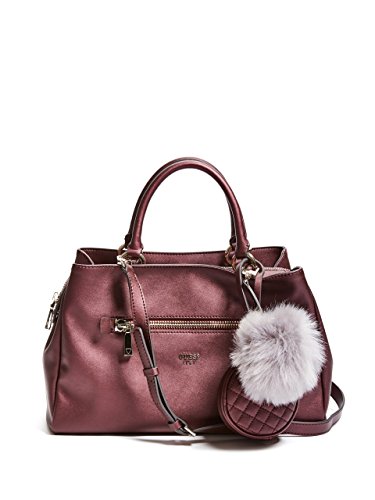 Smooth faux-leather satchel features center zipper compartment, divided interior and multipurpose pockets. Logo-print lining. Front zipper pocket. Removable pom keychain and quilted coin purse.Feature