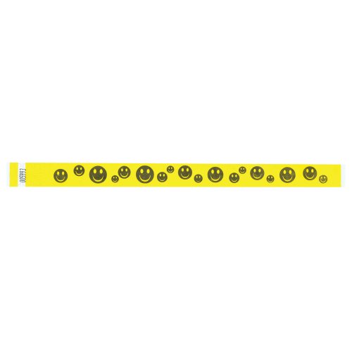 -. Title : Tyvek Wristbands 3/4 Inch - Happy Faces Pattern - Yellow Color - 500 Bands Per Box