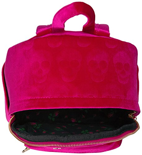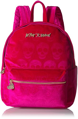 Betsey Johnson fashion skull printed backpack. Velvet exterior with top zipper, top handle and two adjustable back straps.