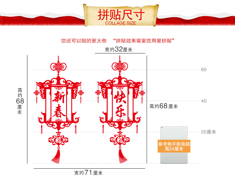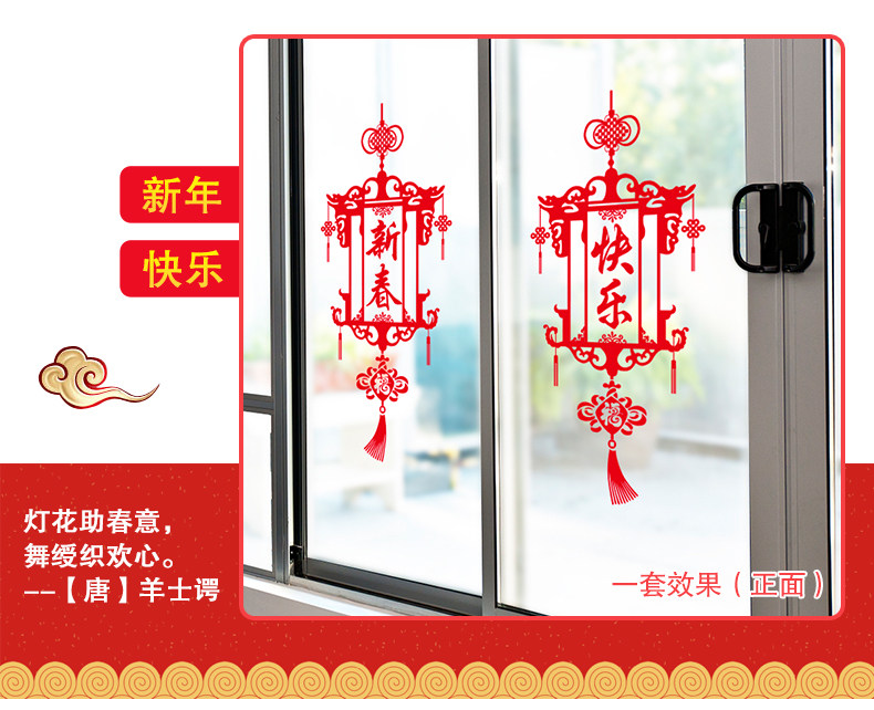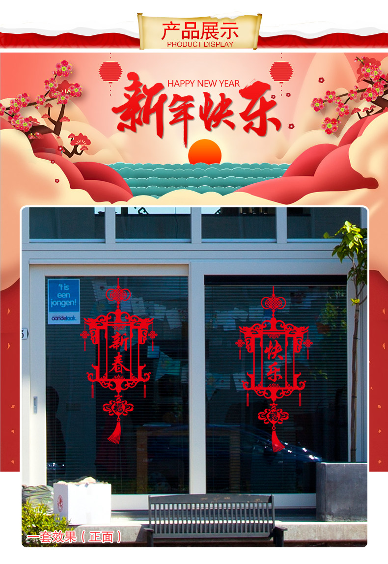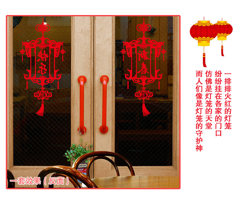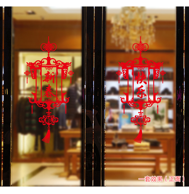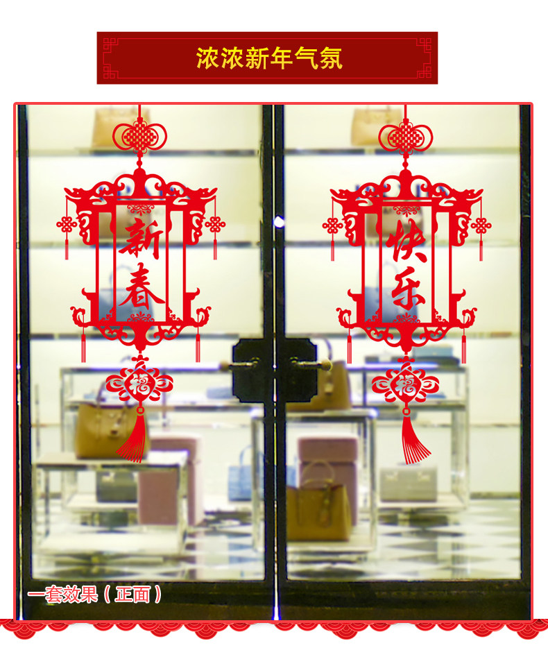 墙贴纸贴画商场店铺橱窗玻璃门贴新年春节过年装饰品复古灯笼创意