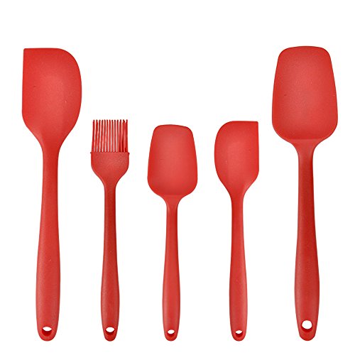 -. Title : 5 Kitchen Utensils Cooking Tools Eco Tableware Silicone Spoon Spatulas Scraper Oil Brush Home Gadgets Heat Resistant Cookware Non Stick Flexible for Cooking BBQ Baking(Red) Icefire