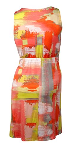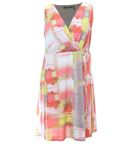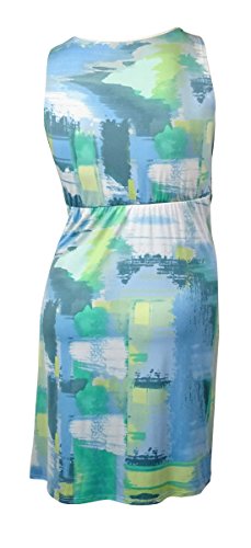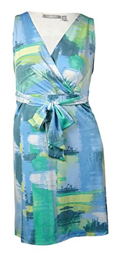 Product DescriptionDress features lined top, surplice V-neckline, sleeveless, printed jersey fabric, attached tonal self-belt, and pullover style.0