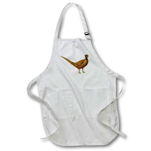 3dRose Vintage Ring-Necked Pheasant Bird Illustration - Medium Length Apron, 22 by 24-Inch, with Pouch Pockets (apr_104664_2)