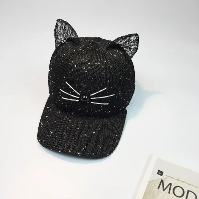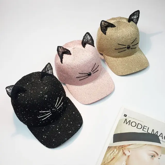 | [해외]새로운 도착 여성 고양이 귀 패턴 장식 조각 야구 모자 여성 남성 snapback 힙합 모자 여성 2017 여름 봄 ppc-3057 |