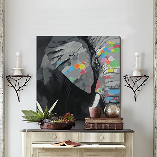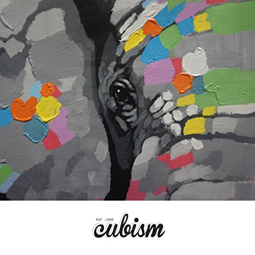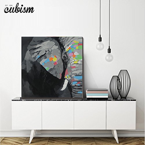 cubism -cubism 100% Hand-painted Elephant Oil Painting on Canvas Artwork(Stretched / Ready to Hang)30x30inch Modern Animal Wall Art for or Living Room Bedroom SIZE: 30x30Inch(75x75CM)