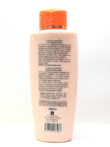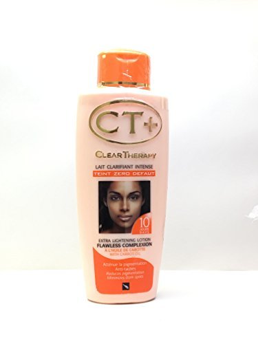 CT+ is a milk formula especially developed for pigmentation proglems. This authentic skin lightening therapy is a fruit acid complex formula that targets spots and pigmentation due to a variety of reasons such as sun damage, and/or pregnancy. The unifying action of the highly concentration CT+ gives you a flawless complexion. Used daily, the results are visible after JUST 10 DAYS! You skin will be fresh and smoother. Apply twice a day after bath or shower.
