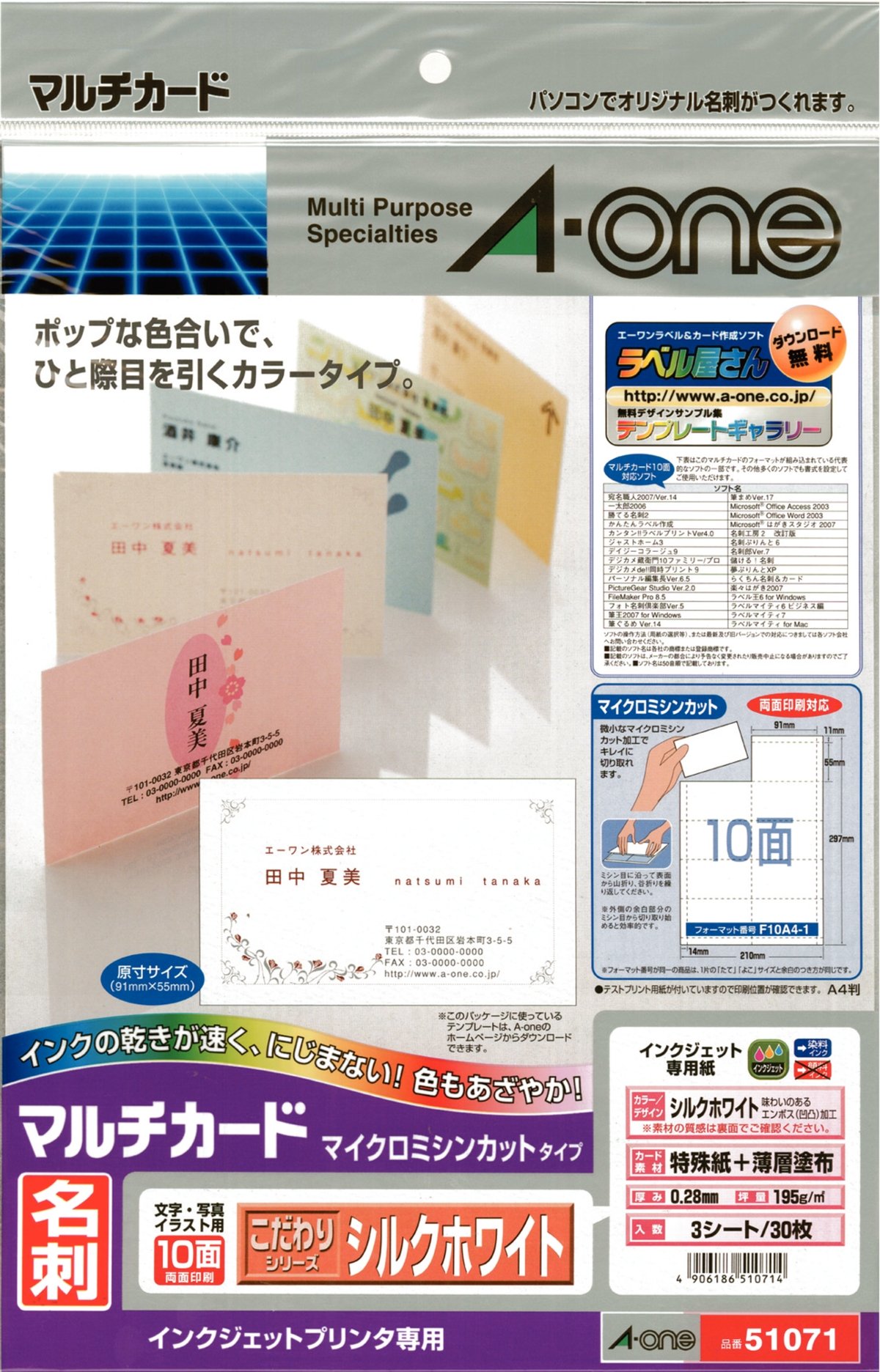 A-One multi-card business card color silk white 30 sheets of 51 071