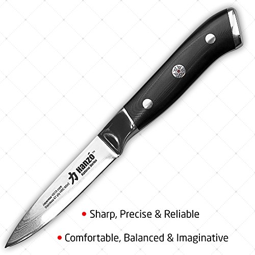 Hanzo과일 부엌칼 나이프 3.75인치블레이드 엣지Stays Sharper for longer thanks to the the Japanese다마스커스vg10스틸67