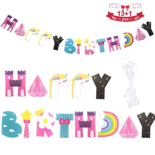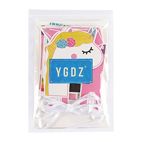 -. Binding : Toy -. Brand : YGDZ -. Feature : UNICORN PARTY - 13 paper pennant flags which spell Happy Birthday. / UNIQUE DESIGN - It is an unique decorations in amazon. Each letter has its own unique design, add more color to kids unicorn birthday party. / EASY TO DIY - You can combine the cards flexibility. And you can easily string cards into banners with the plastic needle in 5 minutes . / HIGH QUALITY - Made of power cardboard. Can be repeated use, environmental conservation. / PROMISE - Add to Cart now! Fulfilled by Amazons and 100% refund service. -. Label : YGDZ -. Manufacturer : YGDZ -. MPN : FYG101 -. PartNumber : FYG101 -. ProductGroup : Toy -. ProductTypeName : TOYS_AND_GAMES -. Publisher : YGDZ -. Studio : YGDZ -. Title : YGDZ Rainbow Unicorn Happy Birthday Banner Pennant