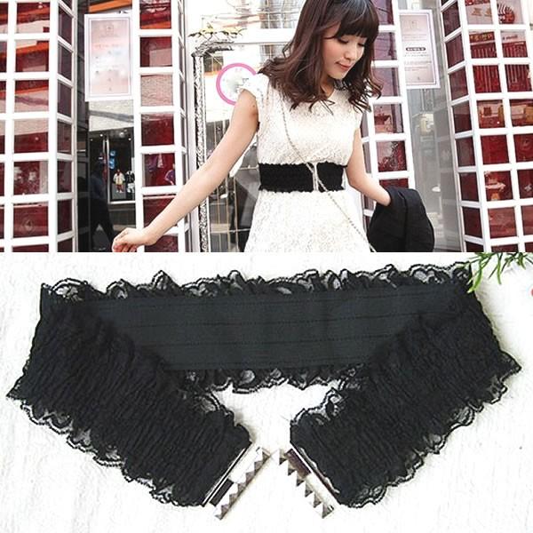 伸びる!フリル レース ゴムベルト 黒 ブラック 結婚式 二次会 ウエストマーク