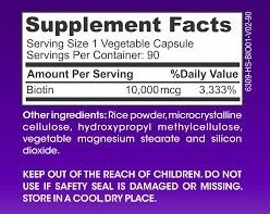 10,000mcg Biotin Per Vegetable Capsules - 90