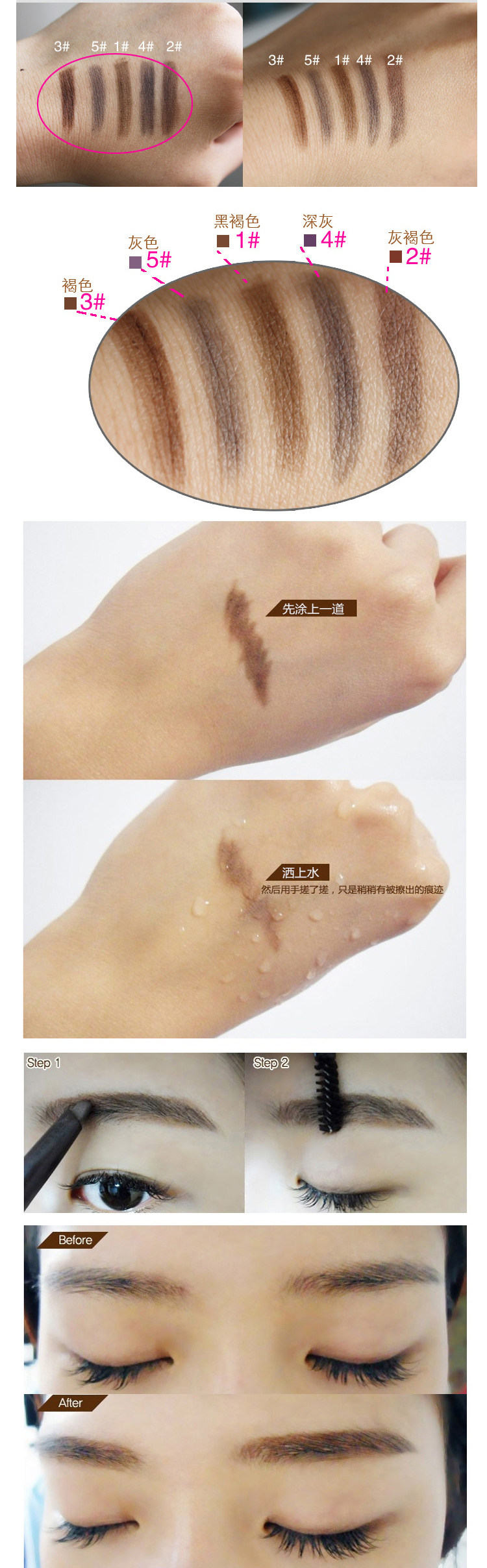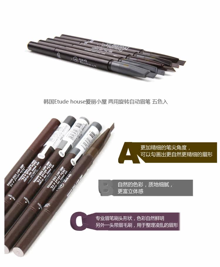 Brand Etude House Etude hut Name of rotary head automatic waterproof eyebrow multi-color selection The origin of Korea specification 25ml The texture of pencil and shelf-life of 3 years The main function structure of natural eyebrow Treasurer recommended bright color, use the fine tip angle, can draw more natural eyebrow more fine. For the crowd All the beauty of the MM Product introduction more vivid colors, use more fine tip angle, can drawmore natural eyebrow more fine. Contains vitamin E, contains no stimulants,sensitive skin can also rest assured that the use of MM. The colors of nature, will not only bring more natural expression of the princesseseyebrows, true ~ and bright color, can make the princesses of the eye morethree-dimensional sense of convenient use, convenient carrying. Use method of the tool will be near the eye and eyebrows Soke removed,first with the eyebrow brush to sweep away the eyebrow hair cuttings, brush out the ideal eyebrows with eyebrow pencil to depict the trend, light righteyebrow. With the eyebrow brush eyebrow thrush after along the direction of light comb, make the eyebrow color consistent depth, nature in harmony. |