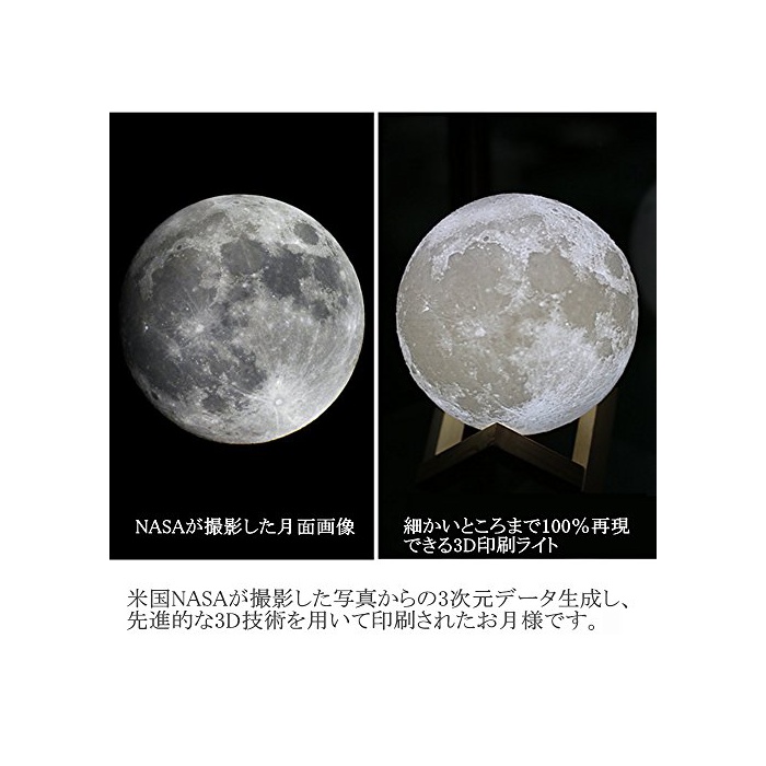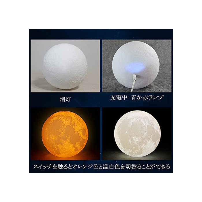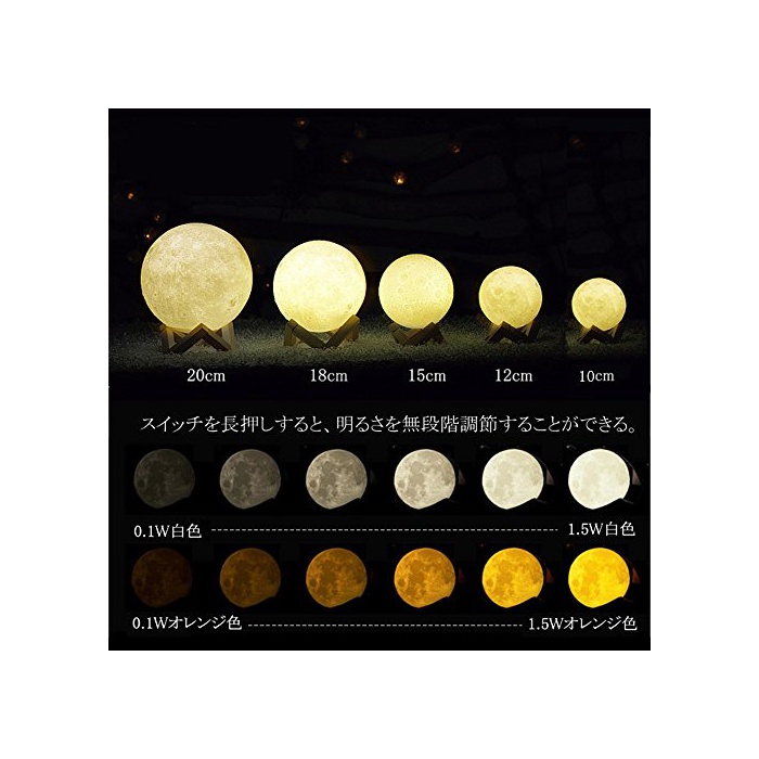 간접 조명 LED 월의 램프 생일 선물 Tengis 플로어 램프 침실 라이트 무단계 조빛 2 색교환 터치 스위치 USB충전 3D프린트 추천 귀엽 고급 상품 (Ø20cm)