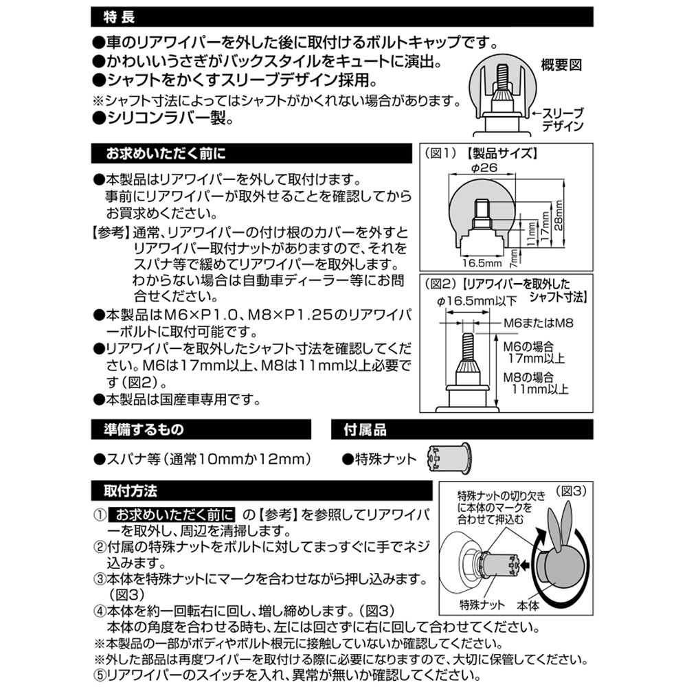 Carmate (CARMATE) rear wiper bolt cap rabbit black LS384