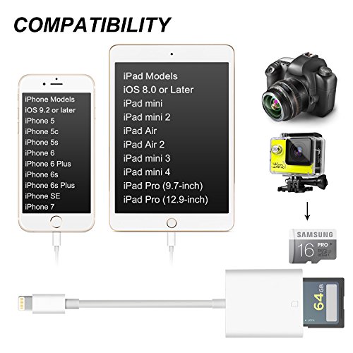 Lightning to SD Card Camera Reader: easy to download photos and videos from digital camera to iPhone/iPad; share to your family and friends immediately