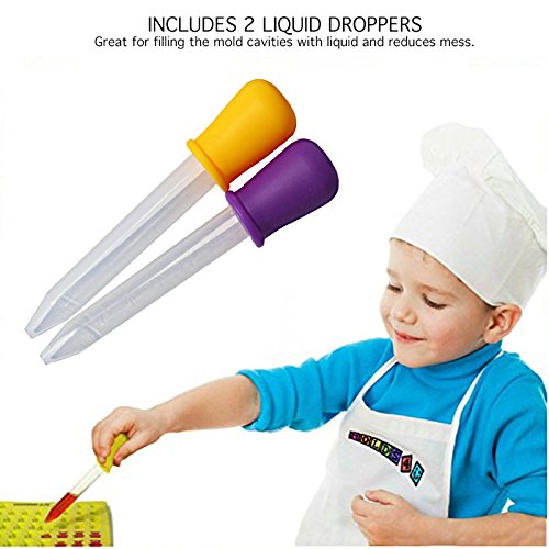 - LARGER & MORE DETAILED - Giving you a perfect 1 inch Gummy Bear every time. Make your own healthier gummy treats without all the sugar and additives found in store bought candy. Get the BEST Gummi Maker Kit for Kids Adults and Family Fun time. Our Family Pack includes our Money Back Guarantee, 1 Year Warranty, 2 x Detailed Gummy Bear Molds (Purple & Yellow) with 38 Cavities each (Totalling 76 Bears), 2 x 5ml Liquid Droppers ( Dropper in Purple & Yellow) plus our Bonus Recipe eBook and Tips PDF.