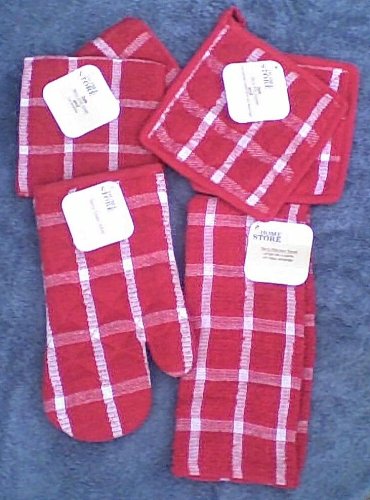 6 Piece Set - 2 Red Terry Cloth Potholders - Red Terry Cloth Oven Mitt - Red Terry Cloth Dishtowel - 2 Red Terry Dishrags