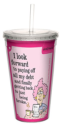 Tree-Free Greetings 16-Ounce Double-Walled Cool Cup with Reusable Straw, Aunty Acid Pay Off Debt (CC98638)