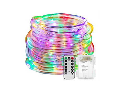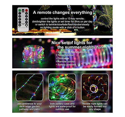 MultiColor LED Rope Lights Battery Operated Waterproof String Lights with Remote Timer Firefly lights 8 Mode Dimmable Fairy Lights For Indoor, Patio, Wedding, Party, Christmas Decoration (16.4ft)