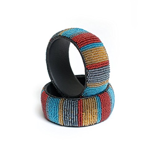 -. Binding : Jewelry -. Brand : Kasandy Inc -. Department : womens -. Feature : Handmade: Each of our bracelets are made by Kenyan entrepreneurs, often mothers supporting their families. / Colorful Beads: Varying patterns are sure to give you some extra charm. / African Inspired: Styled by artisans in Kenya make these something you could never find on a shelf. Fair trade. / Hand Designed Bangles: They are durable, comfortable and lightweight. / Cuff is 1.25 inches high and each bracelet is between 2.5 and 3 inches in diameter. -. Label : Kasandy Inc -. Manufacturer : Kasandy Inc -. ProductGroup : Jewelry -. ProductTypeName : FASHIONNECKLACEBRACELETANKLET -. Publisher : Kasandy Inc -. Studio : Kasandy Inc -. Title : Beaded Leather Cuff Bangle Bracelet: African Handcrafted Unique Womens Jewlery