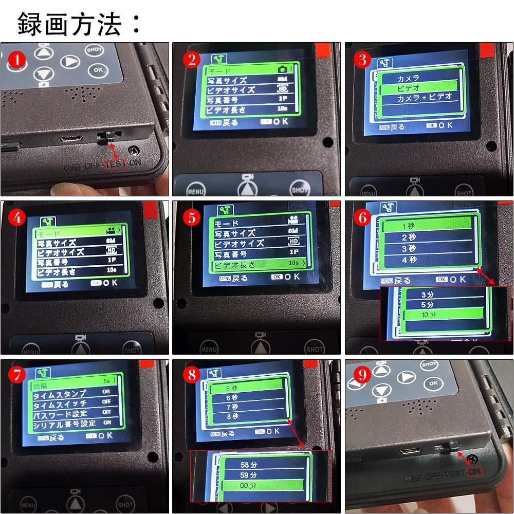 In movie mode, move the mode switch to the "TEST" position in the middle and press the button.
