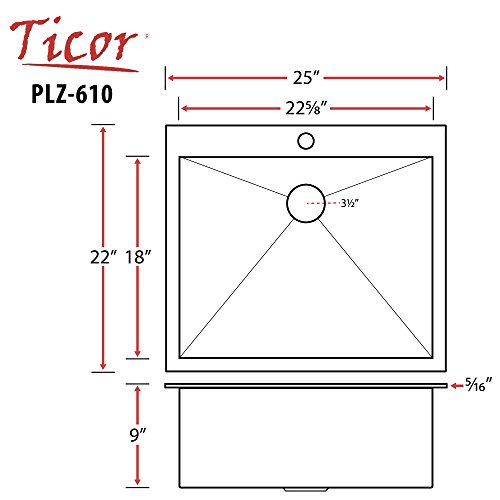 25" Phoenix 18 Gauge 304 Grade Stainless Steel Single Bowl Overmount Topmount Square Zero Radius Kitchen Sink