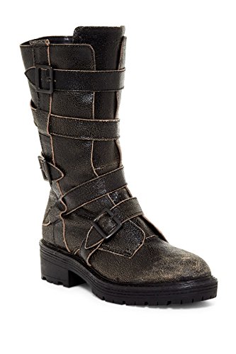Kelsi Dagger Brooklyn Moore Black Distressed Leather Mid Calf Moto Buckle Boots
