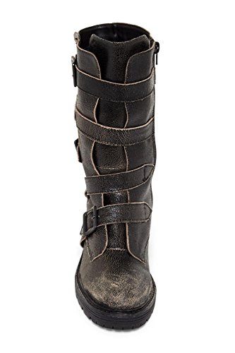 Product DescriptionBuckled straps and a well-worn finish amplify the rugged, broken-down feel of a leather boot set on a sturdy, lugged sole.0