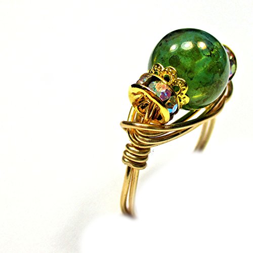 -. Title : Lovely Oceanic Czech Art Glass Artisan Gold Tone Wire Wrap Ring All Sizes