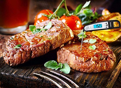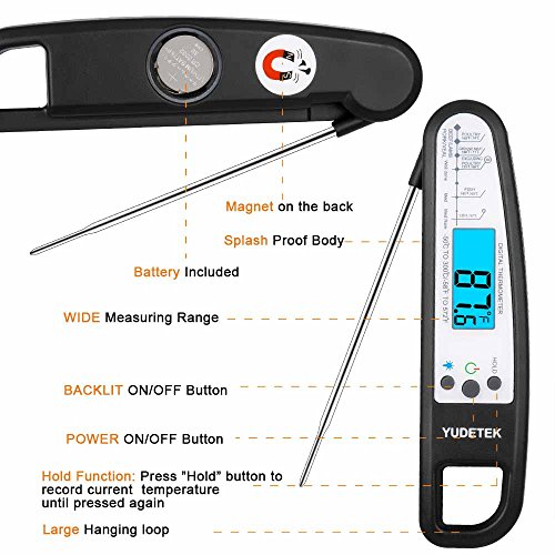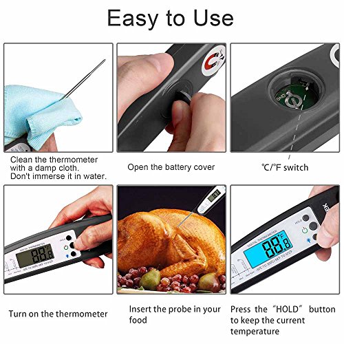 - 【RELIABLE & SECURE】 No more“guessing”. Eliminate overdone or undercooked food, Our electronic thermometers have a CE & FDA certification & give you an instant readout for the best flavor and juiciness. Made of 304 Food Grade Stainless Steel. Splash Proof professional design IP×4.