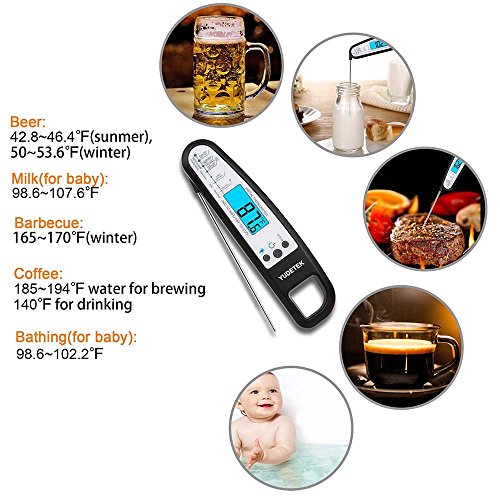 - 【SUPER FAST THERMOMETER】: Instant Digital Readout within 4-7 Seconds: °F/°C switchable, Accurate to within ±1°C with a wide range of -58℉-572℉. “HOLD” button to keeps the current temperature to help you read clearly when making candy, using hot oil for deep frying, brewing beer and wine, making cheese or bread.