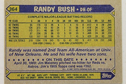 Randy Bush Minnesota Twins Autographed 1987 Topps #364 Signed Card 17G
