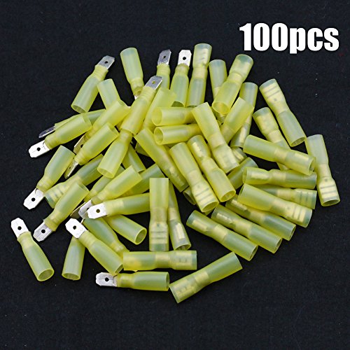 Hilitchi 100Pcs Nylon Heat Shrink Fully Insulated Female Male Spade Wire Electrical Crimp Terminal Quick Wiring Connector (Yellow / 12-10AWG)